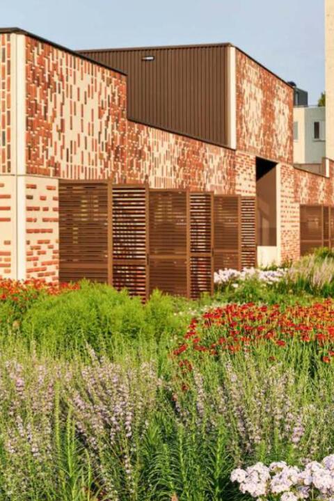 Rondom het gebouw slingeren paden, houten terrassen en kleine zitplekken die uitnodigen om even te blijven. Hier mag je kijken, luisteren, stil zijn. De tuin is geen decor, maar een metgezel een ruimte waarin natuur, architectuur en mens elkaar ontmoeten.